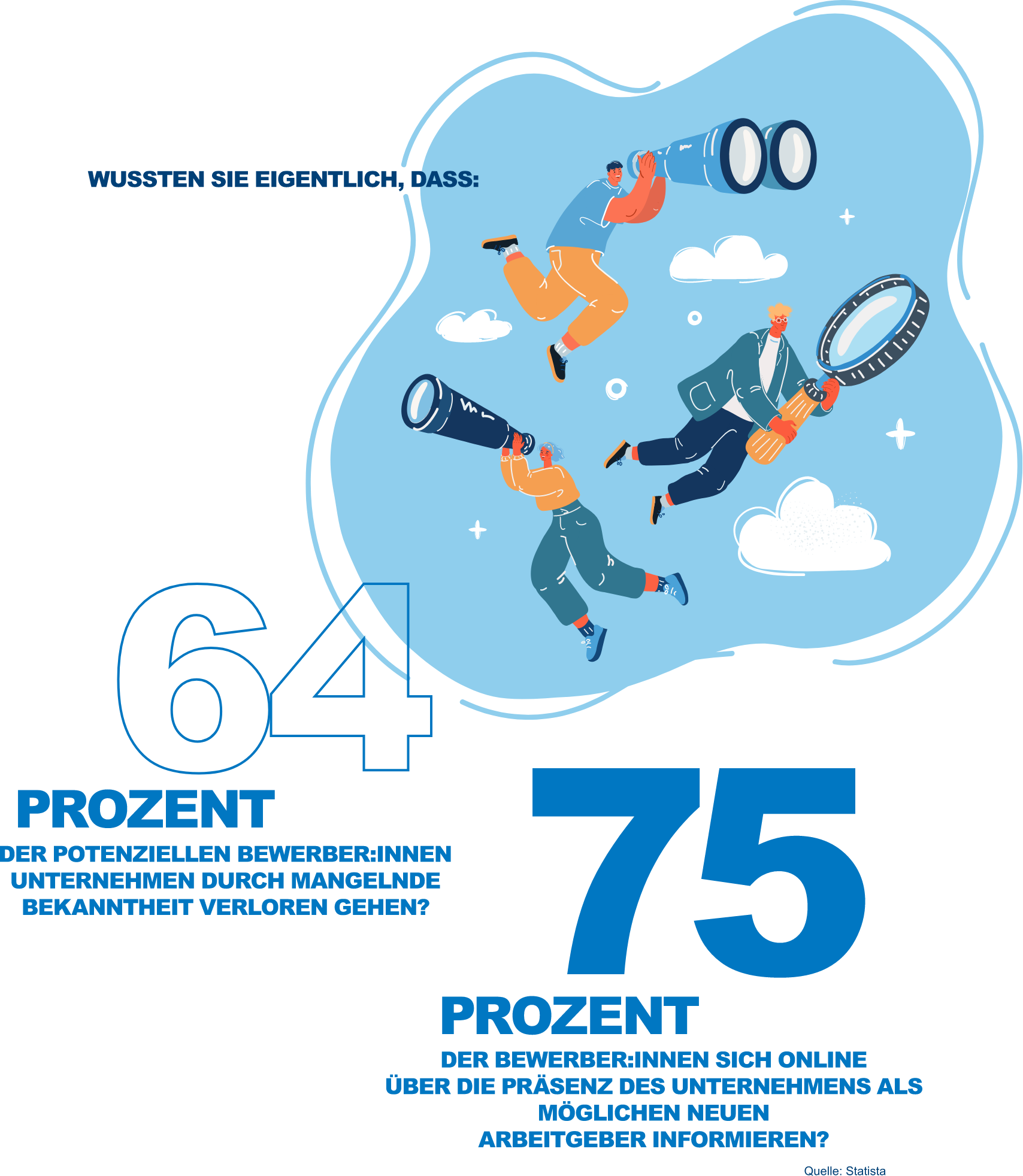 Jobs werden heute hauptsächlich online gesucht und Arbeitgeber über Ihre digitalen Kanäle wie Web- und Karriereseite sowie deren Social-Media Auftritte gefunden und bewertet